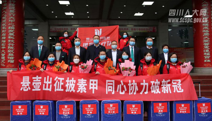 2月20日晚,南充市卫健委要求迅速抽调医护人员参加支援湖北医疗队。院党委发出号召后,短短半小时就有近百名医护人员主动请缨。21日下午,县人民医院9名医护人员整装待发举行出征仪式。余飞带领大家深情重温医学誓言并亲自为他们授旗壮行。队员们在他的感召下,热血澎湃,士气高昂,纷纷表示不负重托,将以最好的状态和最坚定的决心打赢这场没有硝烟的战“疫”。