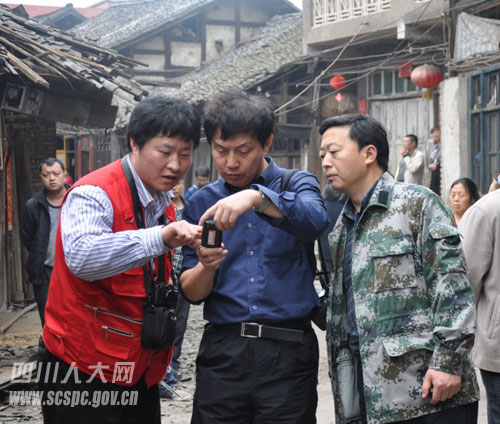 4月20至23日,县人大常委会主任陈德全在芦山家中严重受灾情况下,坚守工作岗位,积极投身抗震救灾第一线,带领常委会副主任陶锦平深入龙苍沟镇、附城乡、五宪乡、烟竹乡参与指导抗震救灾工作,帮助各乡镇细化工作措施、明确当前工作重点。一是各乡镇要举全乡(镇)乡、村、组三级干部之力,细化分工、责任到人,乡(镇)干部包村、村干部包组、组干部包户,逐户对境内农户受灾情况进行仔细排查、登记造册并由农户核实签字,全面掌握基本实情,并及时上报县抗震救灾指挥部。二是要切实做好群众安置和心理安抚等工作,抓好政策宣传、正面引导、灾民安置、情绪疏导、维护稳定等工作,鼓励群众勇敢面对、自力更生,积极开展生产自救,团结起来共渡难关。三是要严格排查地质灾害隐患,落实监控人员,加大监控力度,严密防治次生灾害发生,避免出现新的人员伤亡和财产损失。四是充分发挥村组干部、广大党员、人大代表组织群众、宣传群众、凝聚群众的作用,成为人民群众的“主心骨”和“贴心人”,让人民群众感受到党和政府的温暖。
