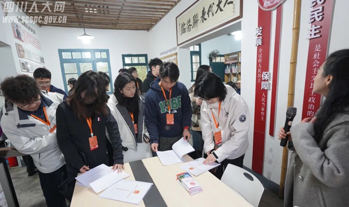 在蒲阳街道团结社区的茶馆里,“一块钱一杯茶”的便民规则背后,是人大代表联络站的创新实践。“我们把联络站搬到茶馆,就是为了方便群众随时说事、议事。”社区工作人员指着墙上的“五事工作法”介绍道。同学们围坐在茶桌旁,你一言我一语的模拟起“茶叙日说事”的场景。在灌口街道人大代表之家,“喫講茶”调解室、“有事找街长”等特色品牌让同学们耳目一新。“从游客纠纷到邻里矛盾,很多问题都能在这里化解。”民间街长周欧的介绍让同学们兴趣浓厚。“原来人大代表的办公桌、人大的工作还能搬到茶馆里!”四川师大法学院大一新生张馨予,作为刚来成都两个多月的山东人,听到这些脸上满是惊喜。“如果能有机会旁听或参与真实的纠纷调解,对我们法学生来说将是宝贵的实践经历。”她的提议引发了同学们的共鸣,大家纷纷表示,希望未来能增加更多“沉浸式”实践环节。