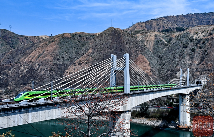 不远处,新成昆铁路上,绿色的复兴号动车组奔驰而过。这条通车近半年的铁路线,将成都平原、攀西高原间的时空距离历史性地缩短。