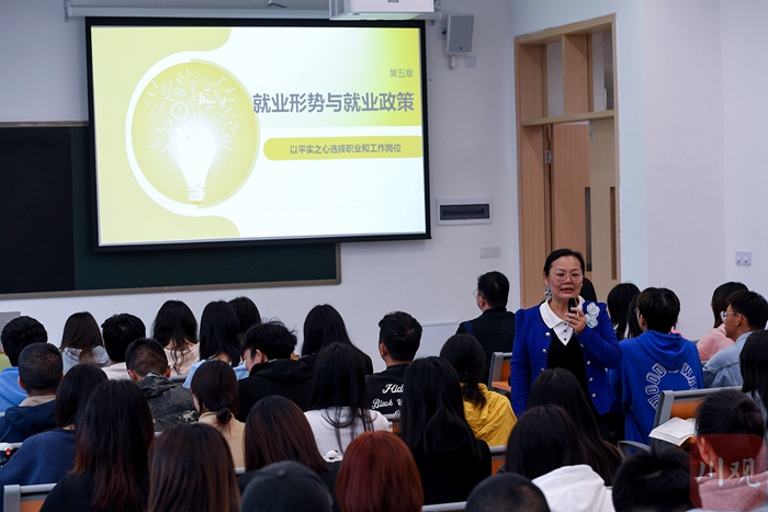 5月9日,宜宾学院临港校区经管学部专职辅导员童娟正在为学生上就业指导课程。肖雨杨 摄
