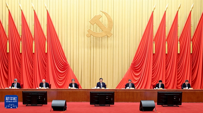 1月8日,中共中央总书记、国家主席、中央军委主席习近平在中国共产党第二十届中央纪律检查委员会第三次全体会议上发表重要讲话。李强、赵乐际、王沪宁、蔡奇、丁薛祥、李希出席会议。新华社记者 庞兴雷 摄