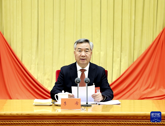 1月8日,中国共产党第二十届中央纪律检查委员会第三次全体会议在北京开幕。中共中央政治局常委、中央纪律检查委员会书记李希代表中央纪律检查委员会常务委员会作题为《深入学习贯彻习近平总书记关于党的自我革命的重要思想,纵深推进新征程纪检监察工作高质量发展》的工作报告。新华社记者 庞兴雷 摄